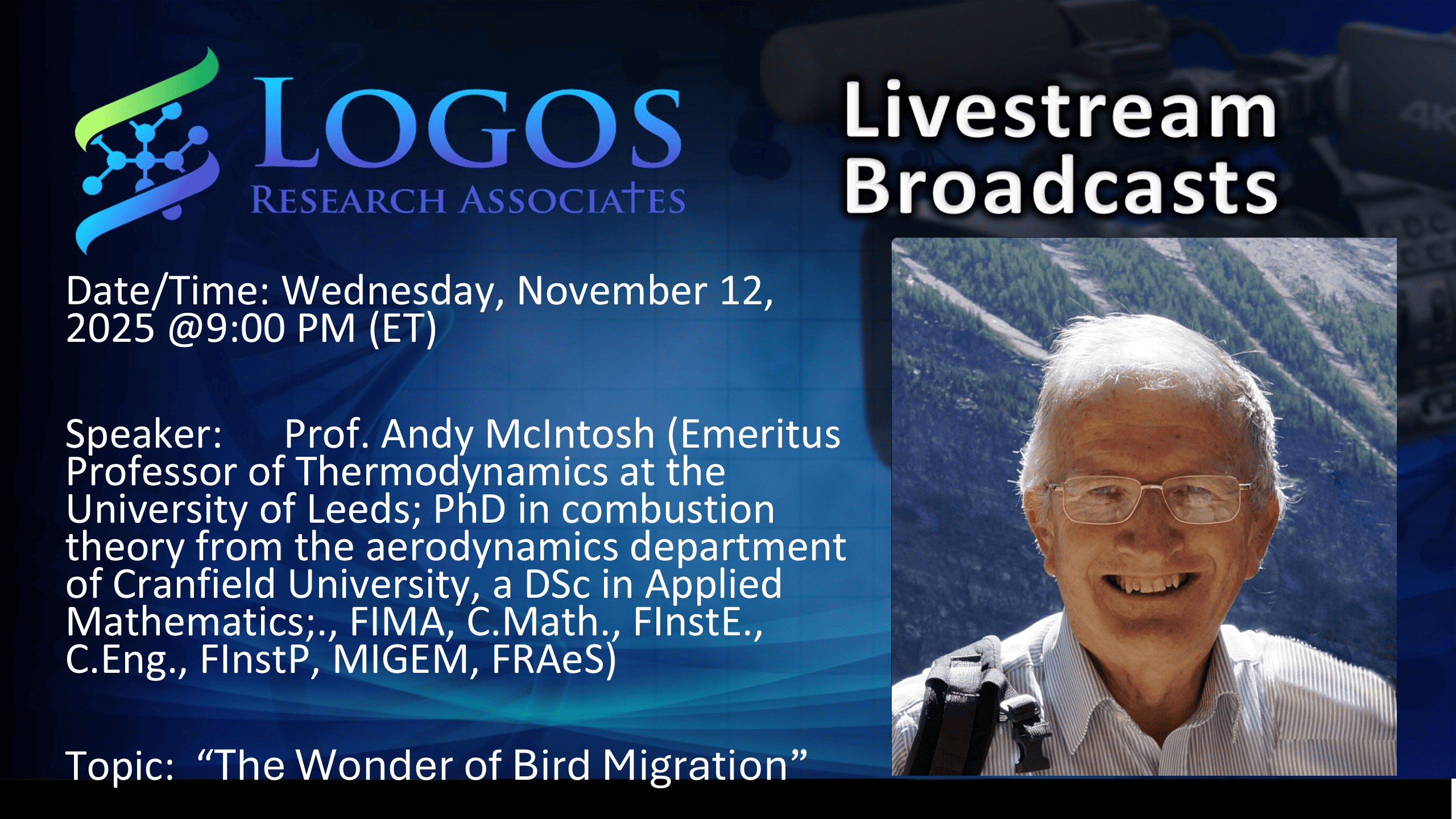 Youtube Livestreamhttps://www.youtube.com/watch?v=semO8FsDBYQ Join Prof. Andy McIntosh on Wednesday November 12, 2025 as he discusses the fascinating topic of: The Astonishing Marvels of Migration! What does migration in birds and insects reveal about their Designer? Birds remarkably not only know where to go, but how much food (fuel) to eat to get there, but also a number […]